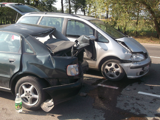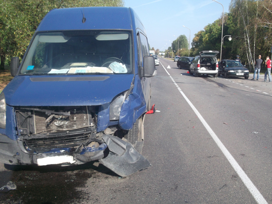 Авария с участием сразу трех автомобилей произошла в Кобрине 14 сентября. По предварительной информации: 36-летний житель г. Бреста, управляя автомобилем «Фольксваген-Крафтер», двигался по ул. Советской в направлении г. Бреста, на перекрестке с улицей Фабричной не выбрал безопасную дистанцию до двигавшегося в попутном направлении автомобиля «Ауди А4», под управлением 40-летней местной жительницы, которая остановилась на перекрестке для осуществления маневра левого поворота и совершил с ним столкновение. В результате автомобиль «Ауди А-4» вынесло на полосу встречного движения, где он столкнулся с автомобилем «Сеат Альхамбра» под управлением 36-летнего жителя г. Кобрина, который двигался во встречном направлении. Водитель автомобиля «Ауди А4» получила телесные повреждения и была госпитализирована в реанимационное отделение Кобринской ЦРБ. По факту ДТП проводится проверка. Сергей БЫЧКОВСКИЙ, начальник ОГАИ Кобринского РОВД