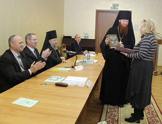 История Кобринского монастыря, представленная заведующей научно-экспозиционным отделом Кобринского военно-исторического музея А.В. Суворова Еленой Рысь, нашла своё продолжение в обзорной экскурсии по музею. “Тема веры сегодня звучит актуально, всё чаще люди задумываются над смыслом жизни, возвращая в неё благотворительность и милосердие, а в стенах этой тихой обители благодаря созидательному труду настоятельницы Спасского монастыря игумении Евфросинии и её “подопечных”, мы находим покой и утешение” – этими словами председателя Кобринского райисполкома Александра Зозули, сказанными во время форума, хочется резюмировать работу конференции. Людмила ДУБИНА. Фото автора.