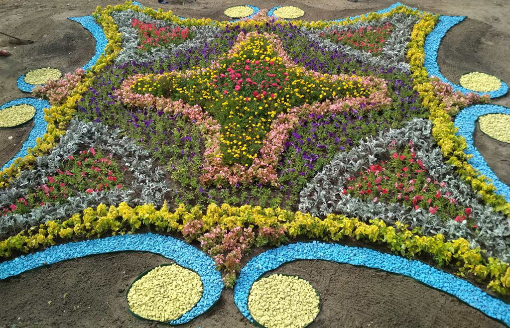 Как рассказал начальник участка зеленхоза Виталий Переход, за 5,5 часа два звена по два человека, состоящих из двух человек в каждом, создали клумбу из 2800 цветов, в которой был использован посадочный материал из шести сортов – астры, петунии, бегонии, цинерарии, бархатцев, колеуса. В качестве декора использовалась цветная декоративная крошка, бордюрная лента, подложный материал (спанбонд).