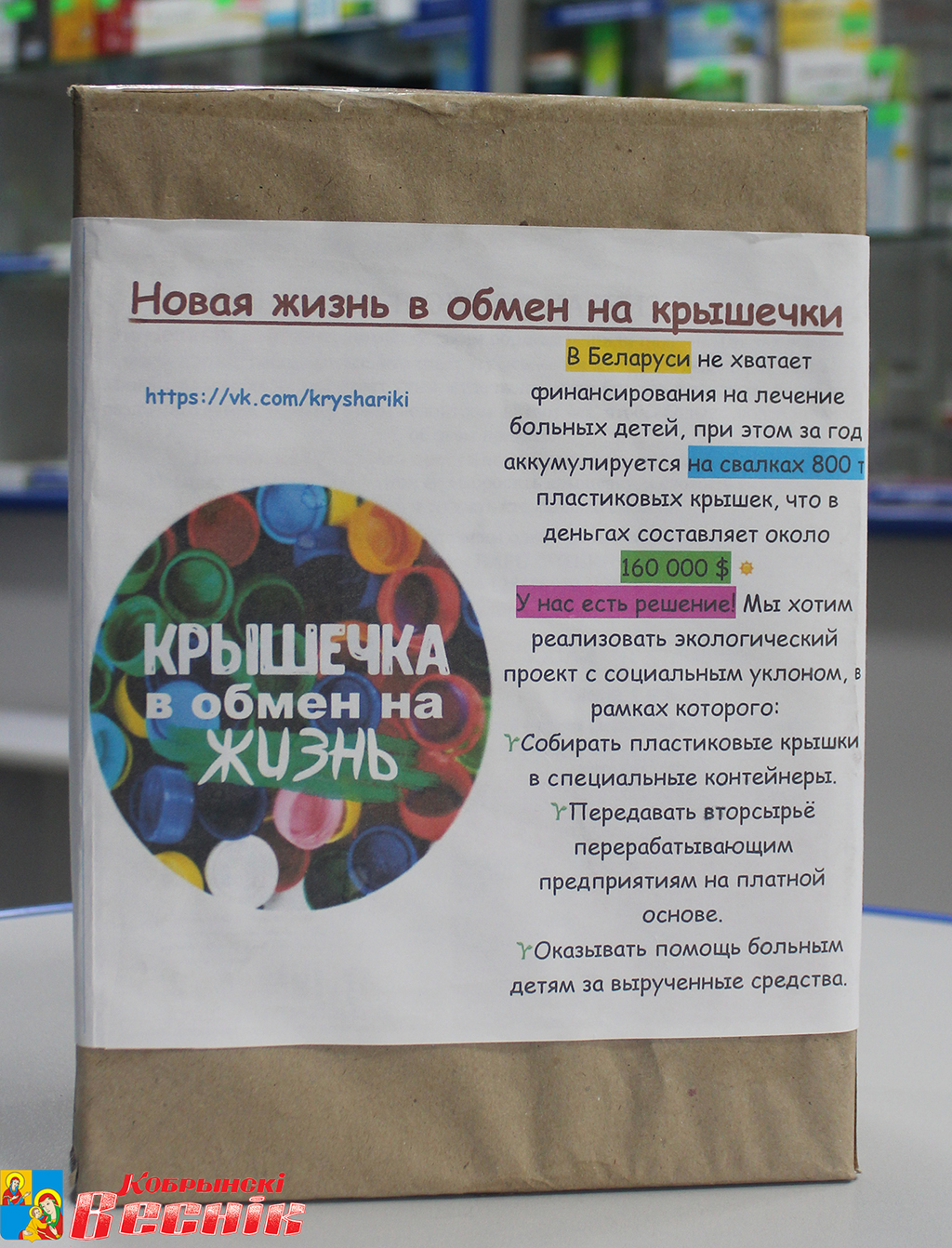 В Кобрине изначально подхватили идею в социальных сетях активные мамы. Как рассказала администратор группы «Мамочки Кобрина» в социальной сети «ВКонтакте» Ольга Ващула, было принято решение создать постоянные пункты сбора, и первые килограммы крышечек были отправлены в столицу в конце апреля. Чуть позже идею подхватили в пришкольных лагерях. Так, в СШ № 8 г. Кобрина было собрано более 2 тысяч крышечек. Несмотря на большую цифру, вес их небольшой (в одном кг примерно 450 крышечек).