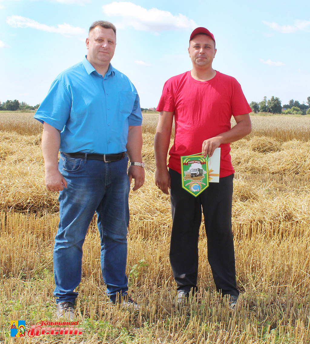 На поле з пшаніцай, дзе пад яркім ліпеньскім сонцам шчыраваў Дзмітрый Нічыпарук, з віншаваннямі прыехалі старшыня райвыканкама Міхаіл Грышкевіч, першы намеснік старшыні райвыканкама-начальнік упраўлення па сельскай гаспадарцы і харчаванні Сяргей Барташ, намеснік начальніка ўпраўлення Людміла Захарчук. Кіраўніцтва ўручыла пераможцы прэмію і падарункі і пажадала ўсяго найлепшага і далейшых поспехаў у рабоце.