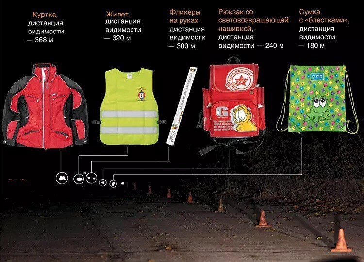 Действенным способом защиты пешеходов на дороге является использование специальных световозвращающих элементов на одежде. Световозвращатели или фликеры – специальные устройства, которые ярко светятся в темное время суток в свете фар автомобилей и являются единственным средством, увеличивающим контраст фигуры человека по сравнению с окружающей средой.