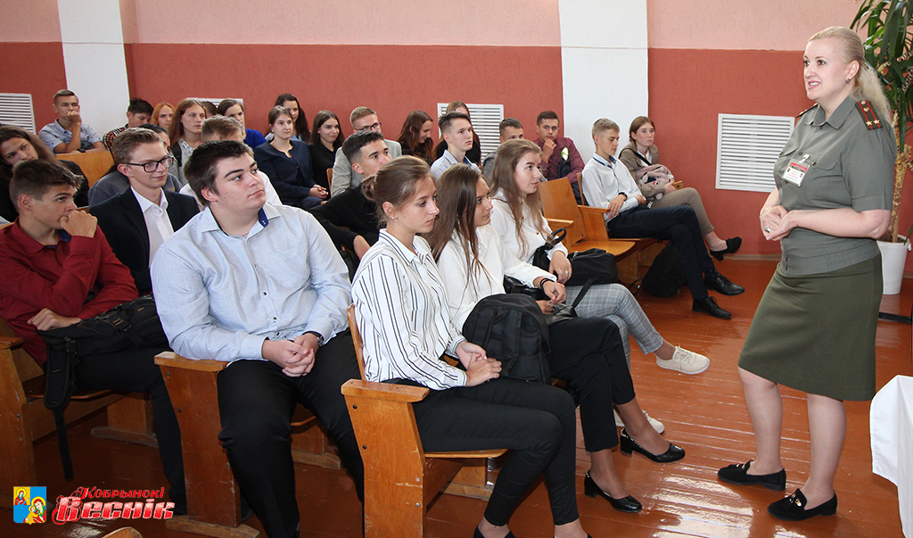 Куда пойти учиться, если манят офицерские погоны, и какие усилия потребуется для этого приложить? Об этом учащиеся 10-11 классов СШ №2 г. Кобрина узнали в ходе урока мужества, который для них провела заместитель военного комиссара – начальник мобилизационного отдела военного комиссариата Кобринского и Жабинковского районов подполковник Ольга Романус.