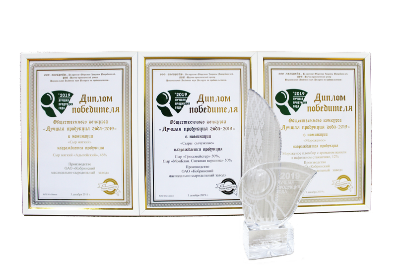 – “сыры сычужные” за сыр “МонБлан. Снежная вершина” и “Гроссмейстер; ТМ “Кобринские сыры”;