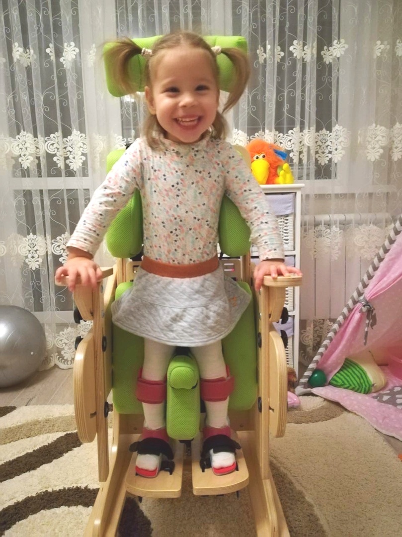 Сейчас Софии пять лет. У нее 4 степень утраты здоровья, но благодаря маме, которая одна неустанно возит ее на лечение и реабилитации, девочка понимает речь, произносит простые слова и звукоподражания, удерживает предметы, может самостоятельно стоять в отрезах у опоры и даже переставлять ножки с поддержкой.