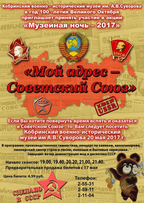 Хотите узнать больше? Уважаемые жители Кобринского района! УК «Кобринский военно-исторический музей им. А. В. Суворова» в год 100-летия Великого октября приглашает 20 мая