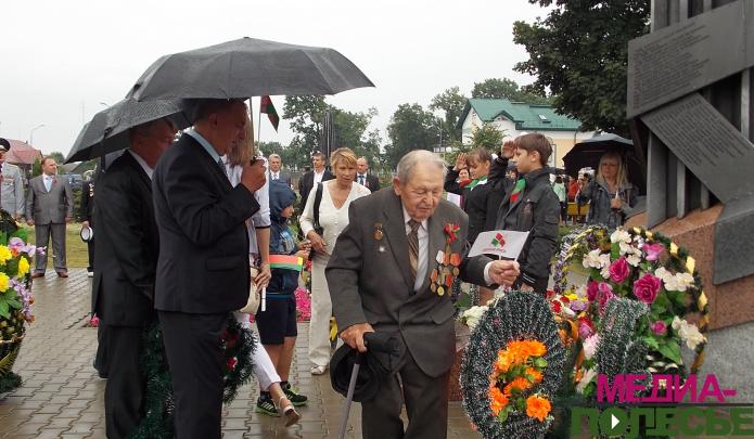 Прозвучал трёхкратный оружейный залп в честь погибших воинов. Представители трудовых коллективов и общественности возложили цветы и венки к обелискам.