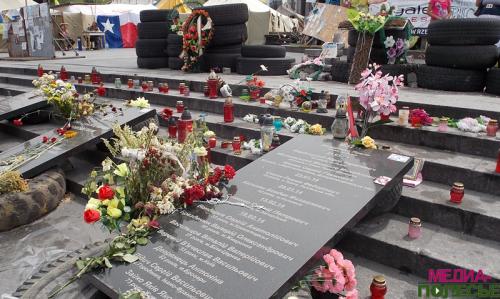 Много туристов. Майдан стал музеем под открытым небом. Память о погибших воплощена в мемориальных досках с именами «небесной сотни».