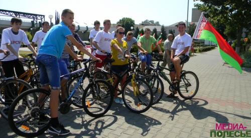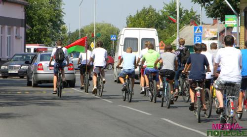 В сопровождении двух автомобилей ГАИ от здания Детской школы искусств стартовала велоакция «Попутный ветер». Юные велосипедисты направились к Кургану Бессмертия, где возложили венки к обелиску.
