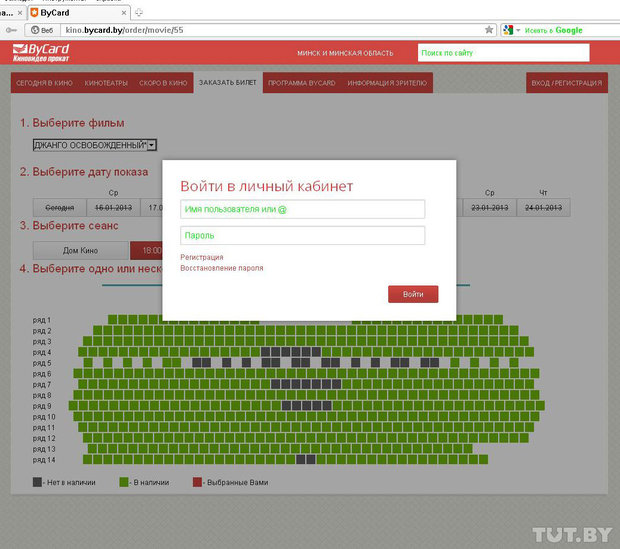 Корреспонденту TUT.BY удалось опробовать тестовую версию сайта, на котором в ближайшее время можно будет приобрести билеты. Уже 17 января по новой системе можно будет купить билет в Дом кино. А на следующей неделе к этой системе подключат кинотеатр "Октябрь".