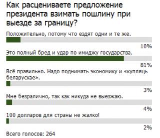 Хотите узнать больше? На вопрос «Как расцениваете предложение президента взимать пошлину при выезде за границу?» ответили на Медиа-Полесье 262 респондента. ...