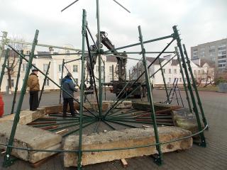 В Лунинце на площади начали монтаж новогодней ели