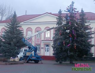 На площади в Лунинце рухнула главная городская ёлка