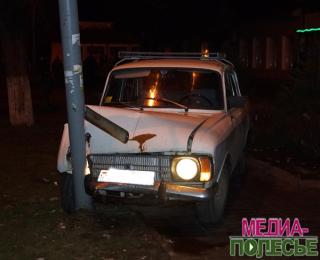 В Лунинце пьяный 20-летний бесправник, выехав на «Москвиче» к ресторану, врезался в столб