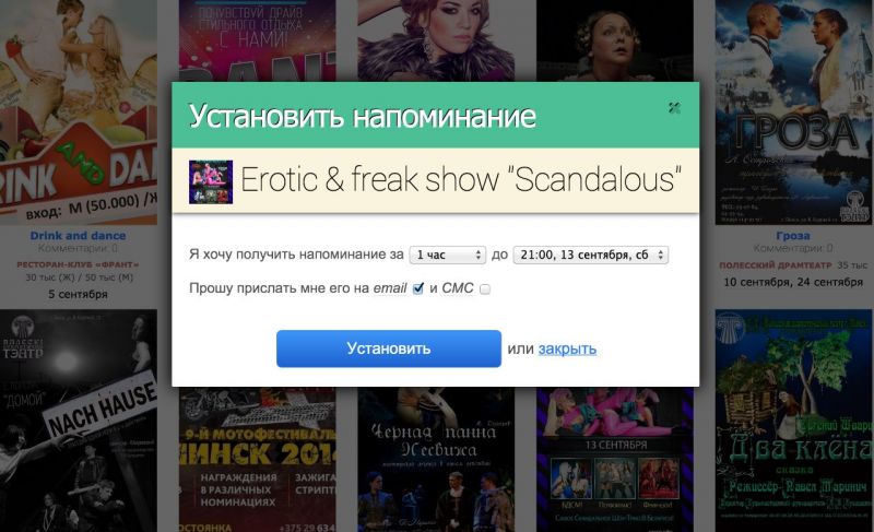 Теперь вы можете планировать свой отдых на много дней вперед. Наша афиша поможет вам в этом, а чтобы не пропустить событие, на него можно подписаться, и получить напоминание по email, либо СМС. И все это совершенно бесплатно для вас, дорогие пинчане.