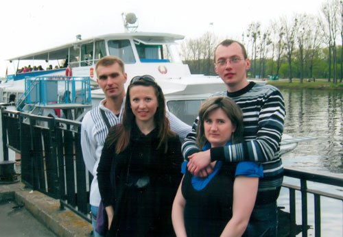 Сергей Тарелко (справа) с невестой Ольгой и друзьями накануне предстоящей свадьбы.