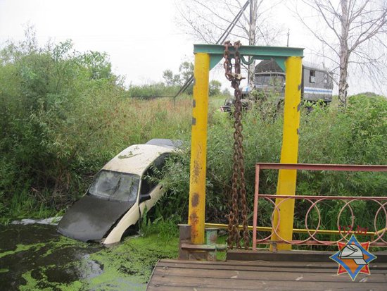 Автомобиль вытянули из реки специалисты водолазно-спасательной службы Пинского центра республиканского отряда специального назначения МЧС РБ.