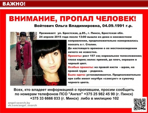 Хотите узнать больше? 3 мая сотрудники милиции прекратили поиски Ольги Войтович, которая пропала десять дней назад по дороге в Столин. Как выяснилось, все это время