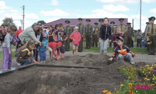 И вот под троекратный залп из орудий и звуки духового оркестра Пинского погранотряда урна с останками найденных семи бойцов опускается в братскую могилу.