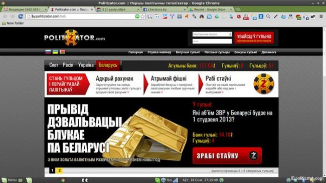 Действительно, среди прочего на сайте принимаются ставки на то, сколько белорусских политзаключенных встретят Новый год за решеткой. Параллельно с этим идет игра на тему возможности девальвация белорусского рубля, принимаются ставки на то, какой размер золотовалютных резервов будет у страны на 1 января 2012 года.