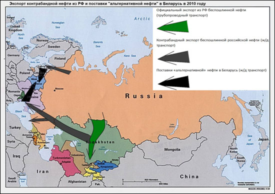 Напомним суть альтернативных поставок нефти в Беларусь. В 2010 году российские компании перенаправили часть контрабандной нефти, которую они вывозят в Америку без уплаты полной экспортной пошлины (под видом мазута), на переработку в Беларусь.
