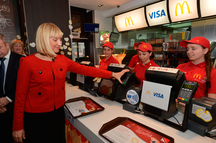 Светлана Георбелидзе, глава офиса Visa Украина, региональній менеджер Visa по странам СНГ. Первая NFC-транзакция в странах СНГ, "МакДональдс" Украина, 28 ноября 2012 г.