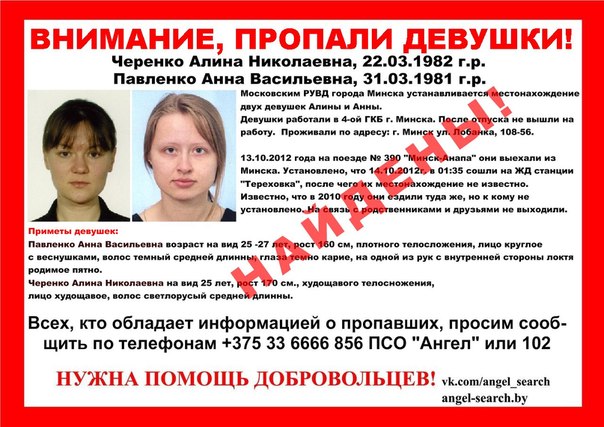 Официальный представитель управления Следственного комитета по городу Минску Александр Герасимов рассказал, что за время с момента исчезновения девушек была проделана большая работа как следователями, так и с привлечением оперативных сотрудников уголовного розыска и других правоохранительных структур. Было установлено и предполагаемое последнее место их пребывания: "На поезде они ехали до Анапы, но сошли немного раньше. Это территория Краснодарского края Российской Федерации. Именно там терялись отслеживаемые нами переговоры с сотовых телефонов".