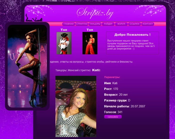 «Мисс Дружба» Екатерина Войтус – стриптизерша. Работает в ночных клубах и на частных заказах. Ее персональная страница имеется на сайте striptiz.by. Там Войтус фигурирует как Кати.