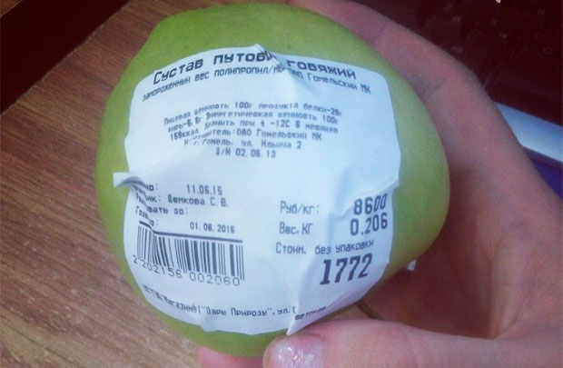 Вроде обычный себе фрукт, вот только на кассе его сначала пробили, как огурец, а потом и вовсе яблоко «пропикало», как сустав путовый говяжий.