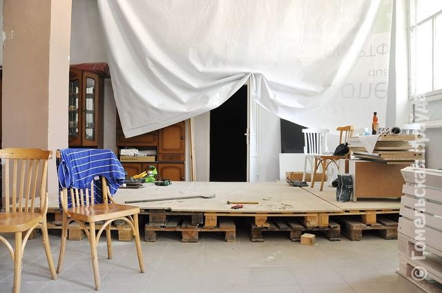 Креативное оформление будет продолжаться даже после открытия тайм-кафе. Так, например, одна стена сделана из весьма необычного материала.