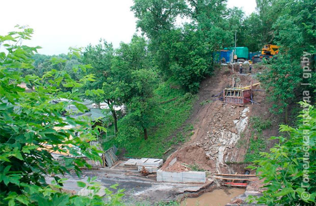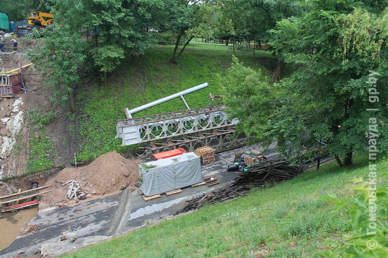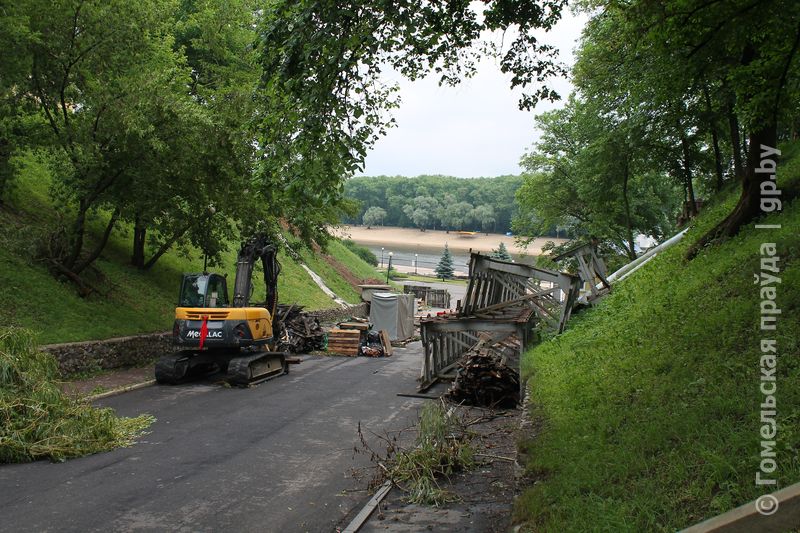 В Гомельском парке над Билецким спуском убрали пешеходный мост
