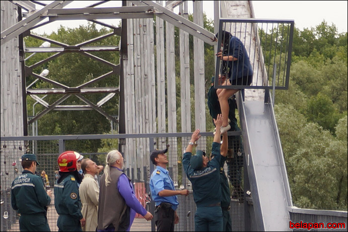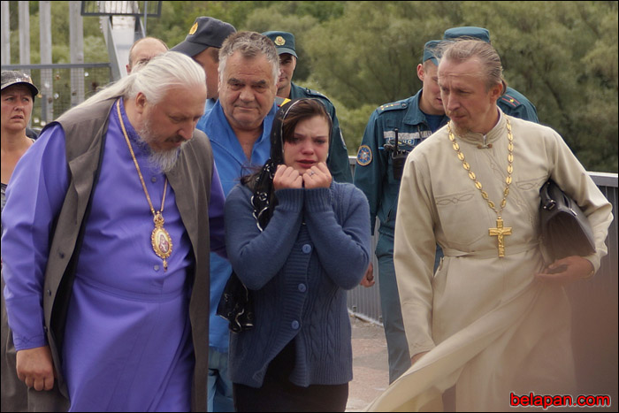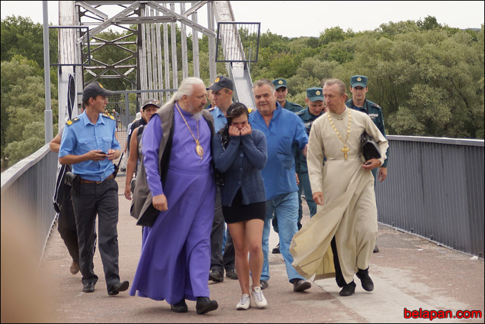 Неподалеку от пешеходного моста находится православное епархиальное управление. На место ЧП пришел епископ Гомельский и Жлобинский Стефан. Стоя на мосту, он долго разговаривал с плачущей девушкой, после чего она спустилась вниз. Епископ увел девушку в епархиальное управление.