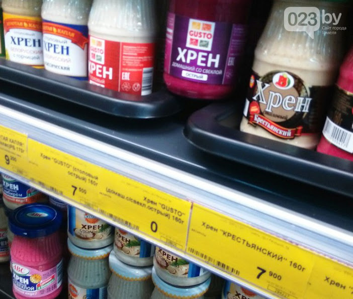 Ни для кого не секрет, что цены в магазинах минской компании «Евроторг» демократичные, скидки и акции постоянно радуют покупателей, но чтобы продукты питания отдавали задаром... Такой приятный бонус к походу за покупками выпадает не часто. Гомельчанину Роману Мазепа повезло. На прилавках с соусами и холодными приправами молодой человек обнаружил острый столовый хрен со свеклой всего за 0 белорусских рублей. Заманчивое предложение от «Евроопта» он поспешил зафиксировать на фото.