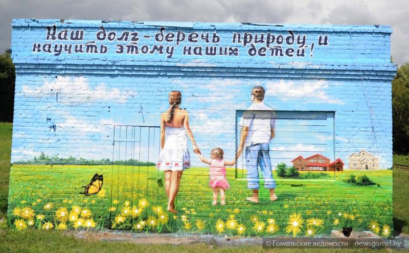 Так, Гомельский областной комитет природных ресурсов и окружающей среды с помощью художников компании «Фреш Дизайн» напоминает жителям и гостям нашего города, что «наш долг — беречь природу и научить этому наших детей!»