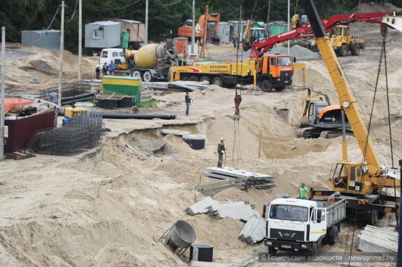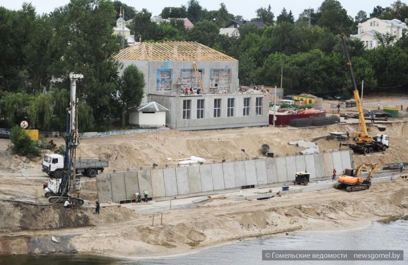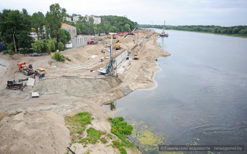 Дворцово-парковый ансамбль, набережная Сожа... Сколько связано с ними у каждого жителя Гомеля и гостей города приятных впечатлений, незабываемых воспоминаний. Эти места дороги сердцу, и изменения, происходящие здесь, интересуют всех. Сегодня на берегу Сожа ежедневно кипит работа. Бригады трёх строительных трестов города, воплощая творческие задумки гомельских архитекторов, делают набережную длиннее и красивее.