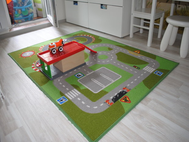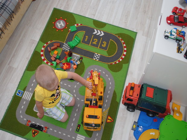 Ковер — из серии «Лиллабу», короткий ворс, принт в виде дороги. Сын играет на нем каждый день. Но самые главные достоинства — ковер защищен от скольжения (имеет прорезиненное основание), а также прекрасно стирается в стиральной машине.