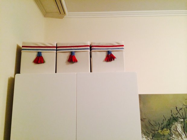 Наверху — вместительные коробочки для хранения. Они хорошо смотрятся в интерьере, легко складываются и стираются.