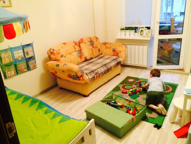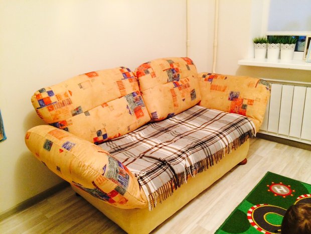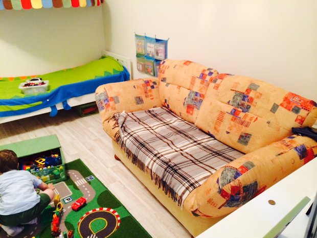 Диванчик старый, но очень удобный. Конечно, с точки зрения дизайна он выбивается из «общей массы», но эта детская «бюджетная», поэтому использовали то, что есть.
