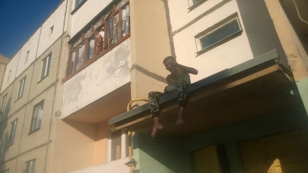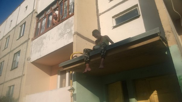 Фотофакт: в Гомеле молодой человек решил перекусить, сидя на козырьке подъезда