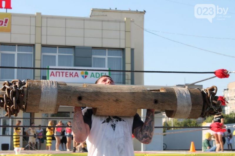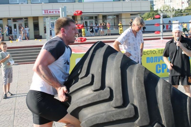 Как выяснилось при общении, он — КМС по пауэрлифтингу (силовое троеборье). Однако до этого дня долго не занимался — восстанавливался после травмы. По словам Евгения, самым сложным был технический момент. Подсунуть руку под лежащую шину гораздо труднее, чем обхватить гриф штанги. Не с первого раза далось Евгению и второе упражнение — поднять над головой 75-килограммовый снаряд в виде бревна с цепями.