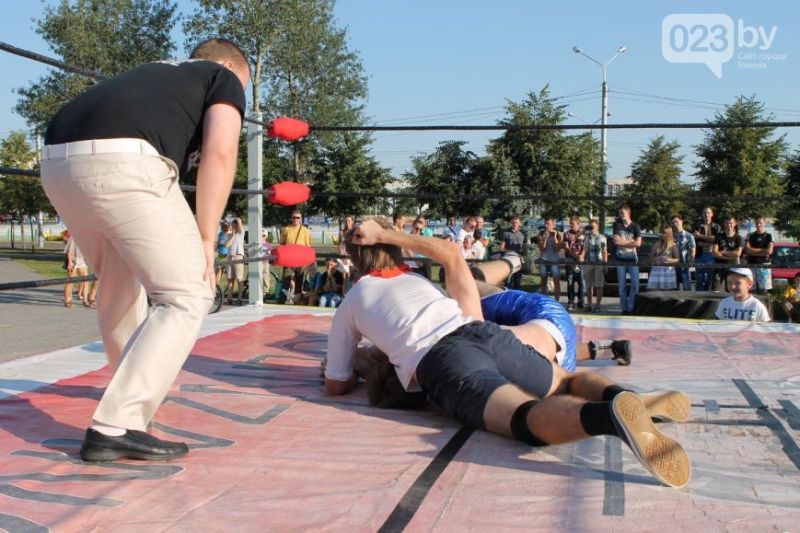 Никто из десятков свидетелей даже не подумал вызвать милицию. Зрители снимали происходящее на телефоны и аплодировали дерущимся. Впрочем, переживать за них, как и гадать о причинах конфликта, не стоит. Его участники — ребята из гомельского клуба профессионального рестлинга. Для тех, кто не в курсе, это спортивно-развлекательное шоу, сочетающее элементы единоборства и театрального мастерства.