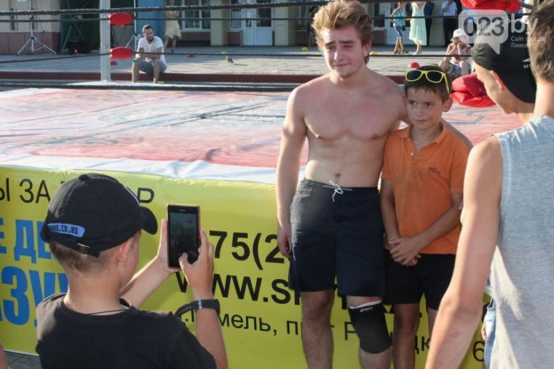 В перерывах между боями участники безотказно фотографировались с болельщиками. Денег за это они не брали. Желающие сделать селфи со звездами гомельского рестлинга выстраивались в очередь.