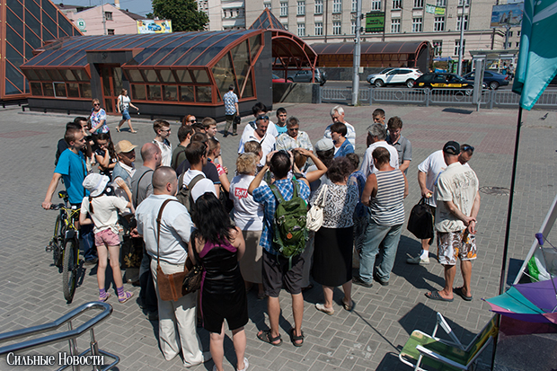 Первый пункт сбора подписей, который посетила Татьяна вместе со своей командой, расположился на перекрёстке улицы Интернациональной и проспекта Ленина, под крыльцом здания «Гипроживмаш».