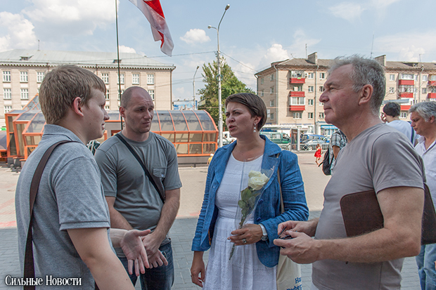Участие Татьяны Короткевич в пикете вызвало живой интерес гомельчан. Для сравнения можно было обратить внимание на находившийся рядом пикет по сбору подписей за нынешнего главу государства.