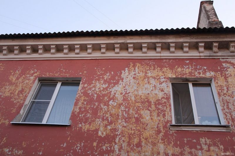 Стены, которые не выходят на улицу чиновники почему-то покрасить забыли несмотря на то, что даже невооруженным глазом видно, что они требуют срочного и неотложного ремонта. Жители дома неоднократно жаловались в местное ЖЭУ, в ответ получали только отписки.