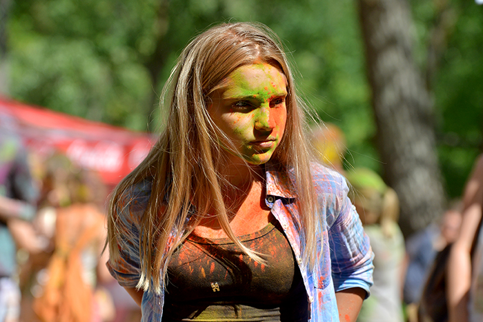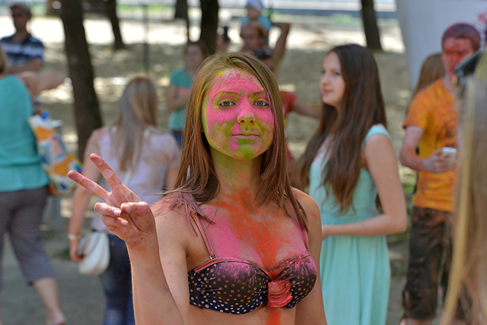 Разрекламированный фестиваль цветных красок Holi Fest собрал в Гомеле около пяти тысяч участников. За семь часов музыкального марафона зрители высыпали на себя килограммы красящего порошка. Стойко держались единицы.