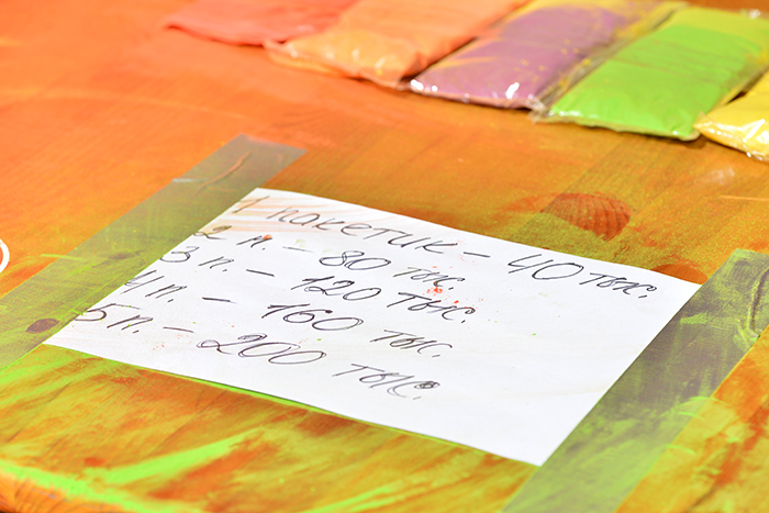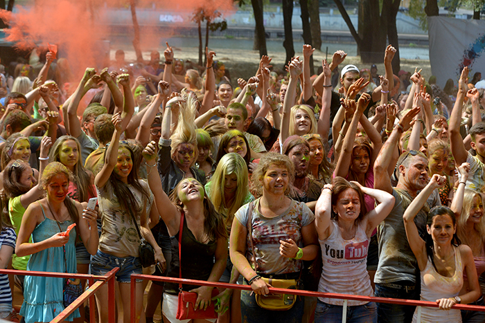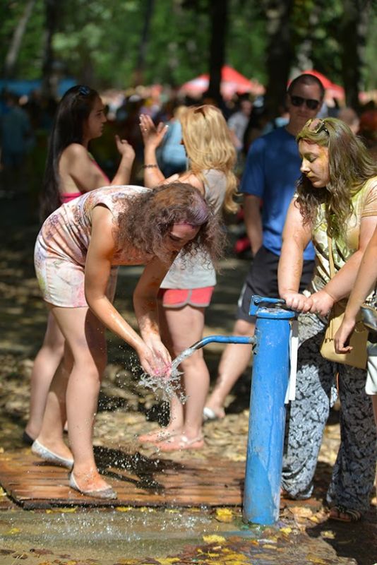 С полудня до семи вечера публику развлекали столичные диджеи и музыканты. Вход на праздник был свободный, заплатить нужно было только за краску. Народ не жалел денег. Все торопились обсыпать себя цветным порошком и сфотографировать мимолетную красоту. После фестиваля её беспощадно уничтожили мыло и вода.