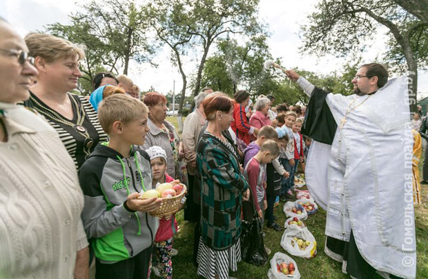 Сегодня горожане могли освятить яблоки под открытым небом, придя в яблоневый сад на Речицком проспекте.
