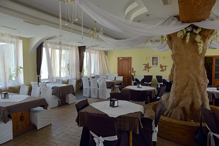Кафе расположено на улице Хмельницкого в здании бывшего ресторана «Ивушка». От известного ещё с советских времён предшественника здесь осталось только дерево-фонтан в центре зала.