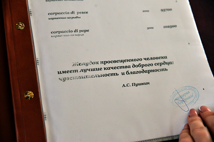 С понедельника по пятницу в обеденное время здесь можно заказать бизнес-ланч. Стоимость комплексного обеда 69900 рублей.